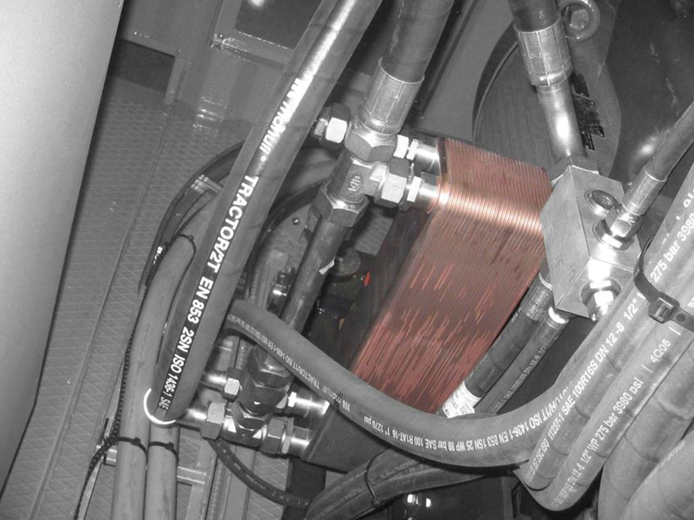 Lo scambiatore di calore a piastre ASA E è progettato per il massimo trasferimento di calore utilizzando piastre profilate in acciaio inox resistenti agli acidi. Le piastre formano canali attraverso i quali passano l’olio e l’acqua (canali alternati). In alto e in basso ci sono le piastre di copertura. Le piastre di raffreddamento sono saldate congiuntamente in tutti i punti di contatto esterni ed interni. Lo scambiatore di calore può essere installato sia nei circuiti delle pompe di carico che nelle linee di ritorno con elevate variazioni di pressione.
